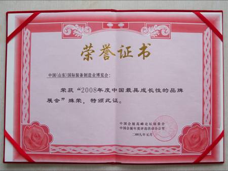 制博會(huì)榮獲“2008年度中國(guó)最具成長(zhǎng)性的展會(huì)”