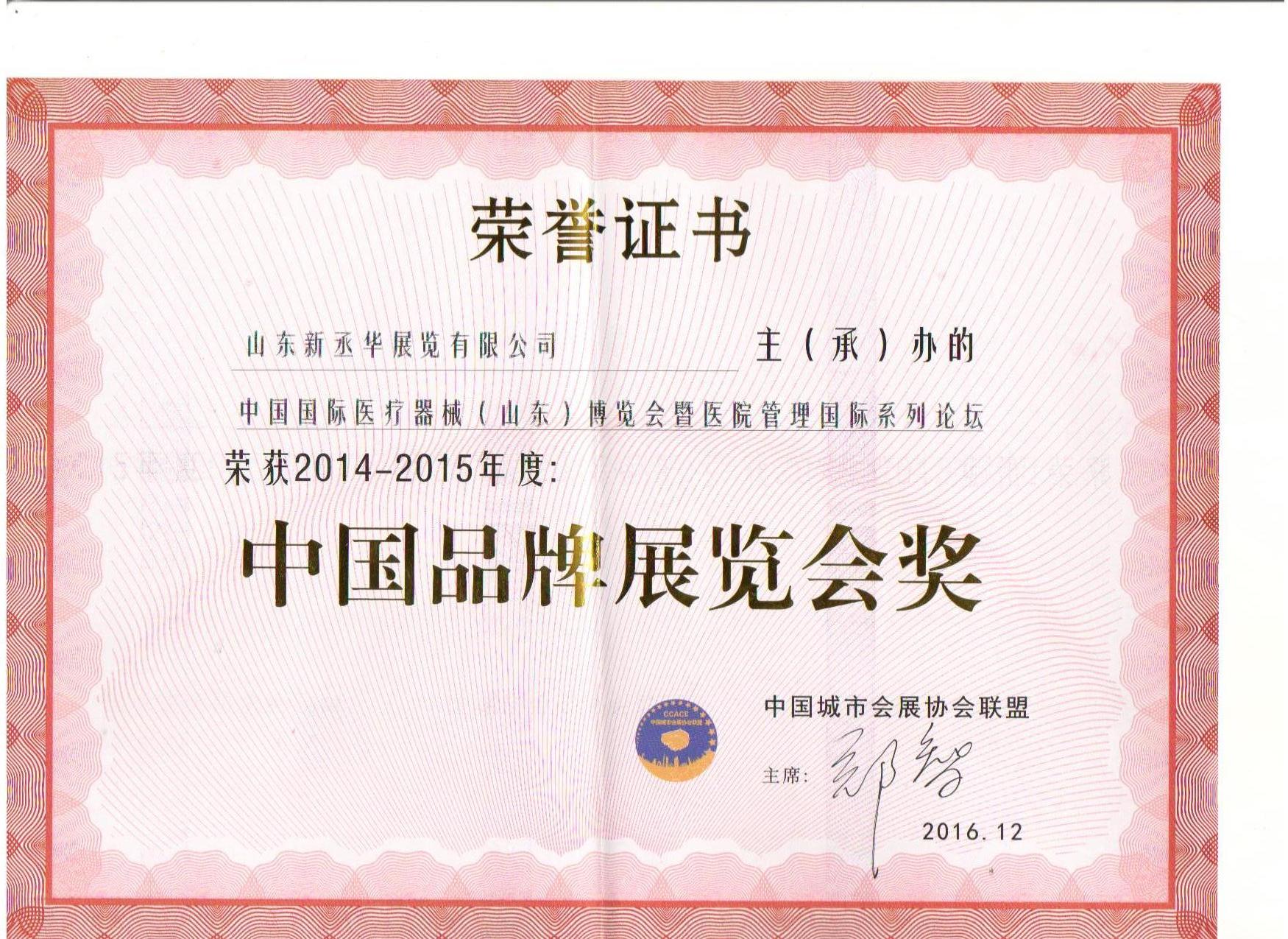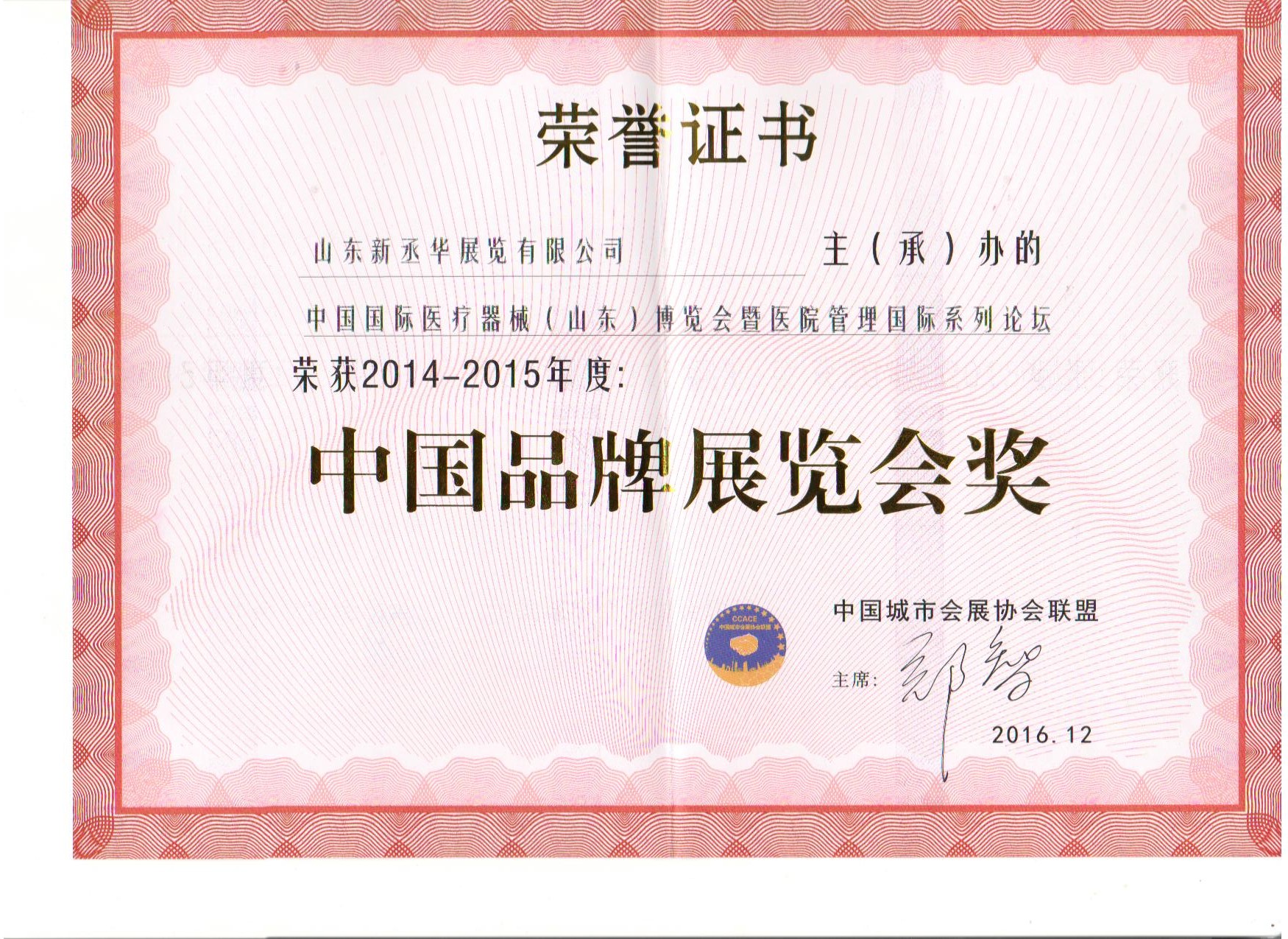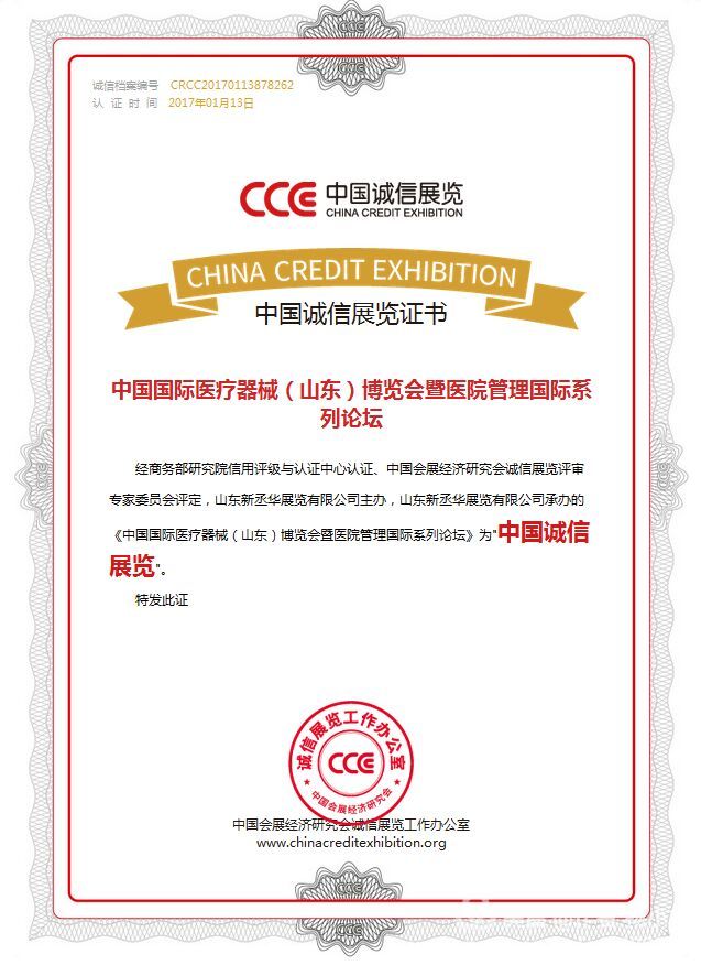 醫(yī)博會(huì)—中國(guó)誠(chéng)信展覽證書