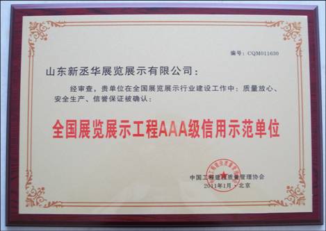 全國(guó)展覽展示工程AAA級(jí)信用示范單位
