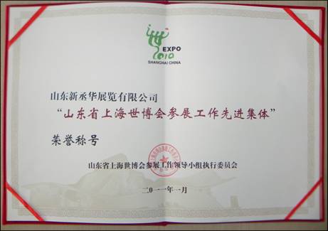 山東省上海世博會(huì)參展工作先進(jìn)集體