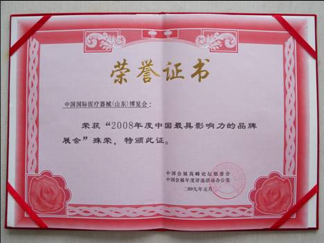 醫(yī)博會(huì)榮獲“2008年度中國(guó)最具影響力的品牌展會(huì)”