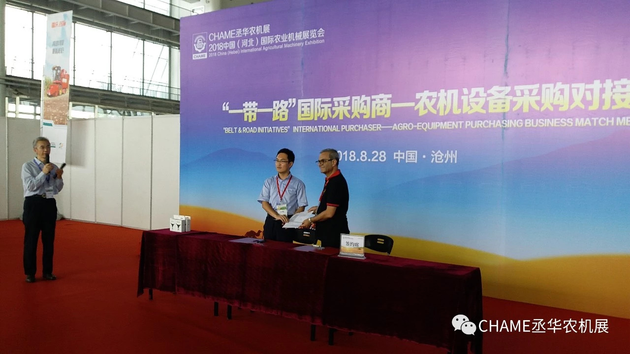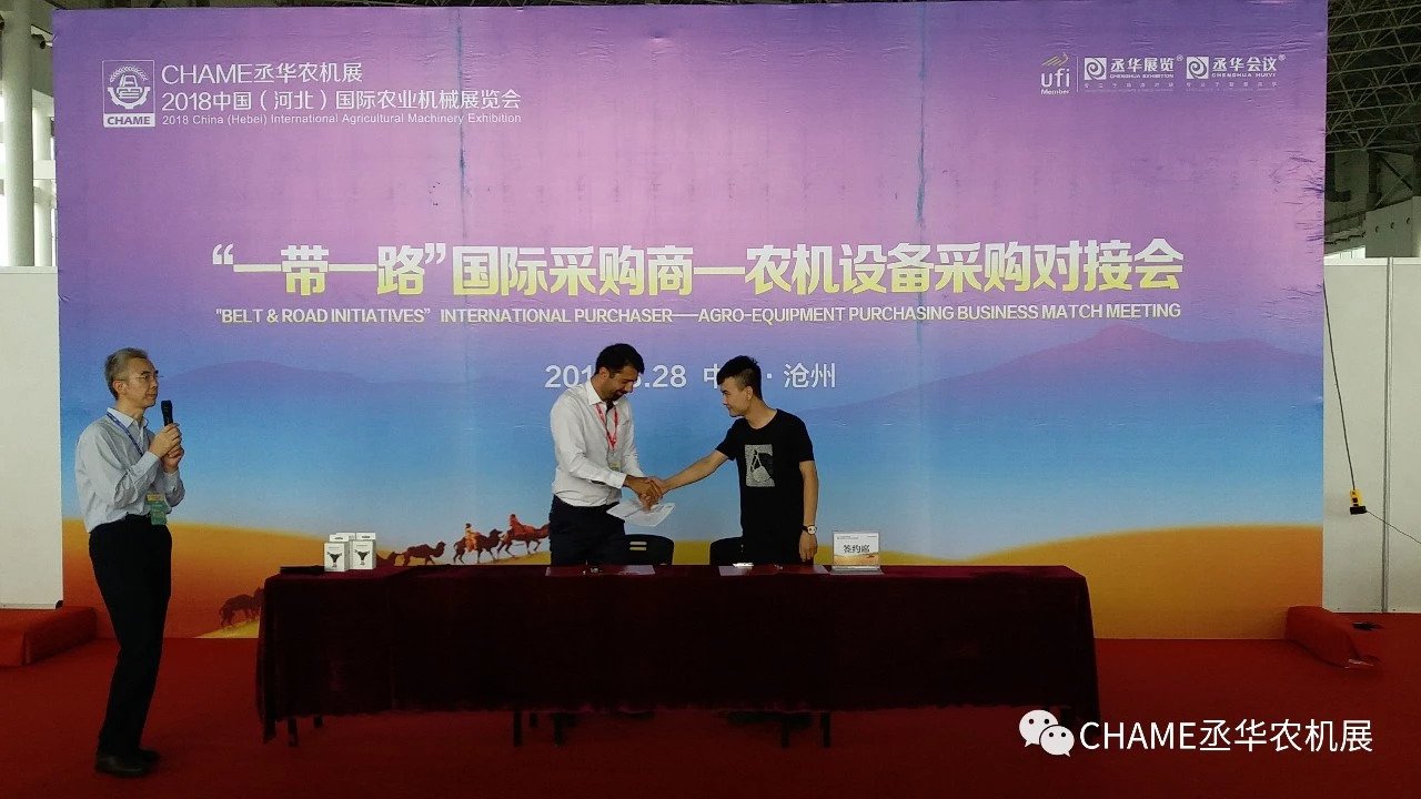 2018中國(河北)國際農(nóng)業(yè)機械展覽會8月28日在滄州國際會展中心盛大開幕!同期舉辦“一帶一路”國際采購商——農(nóng)機設(shè)備采購對接會,來自哈薩克斯坦、伊朗、印度、菲律賓、蒙古5個國家的21家海外采購單位參與對接會。現(xiàn)場簽單11家,其中雷沃重工狂攬海外訂單。