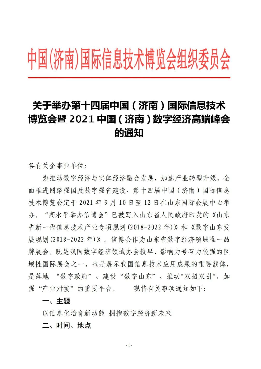 關(guān)于舉辦第十四屆中國(guó)(濟(jì)南)國(guó)際信息技術(shù)博覽會(huì)暨2021中國(guó)(濟(jì)南)數(shù)字經(jīng)濟(jì)高端峰會(huì)的通知