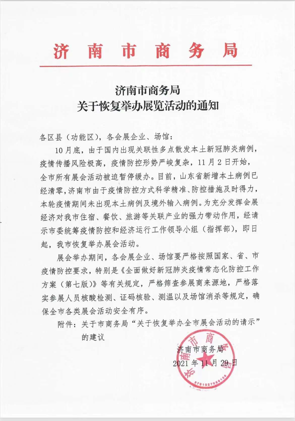 關(guān)于恢復(fù)舉辦展覽活動(dòng)的通知