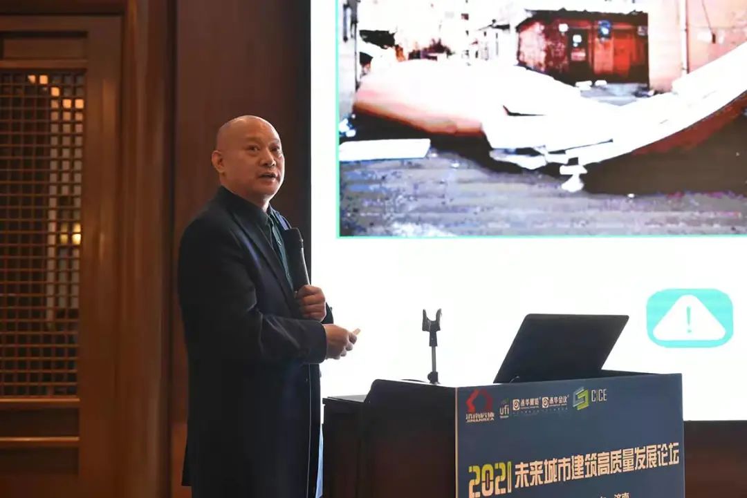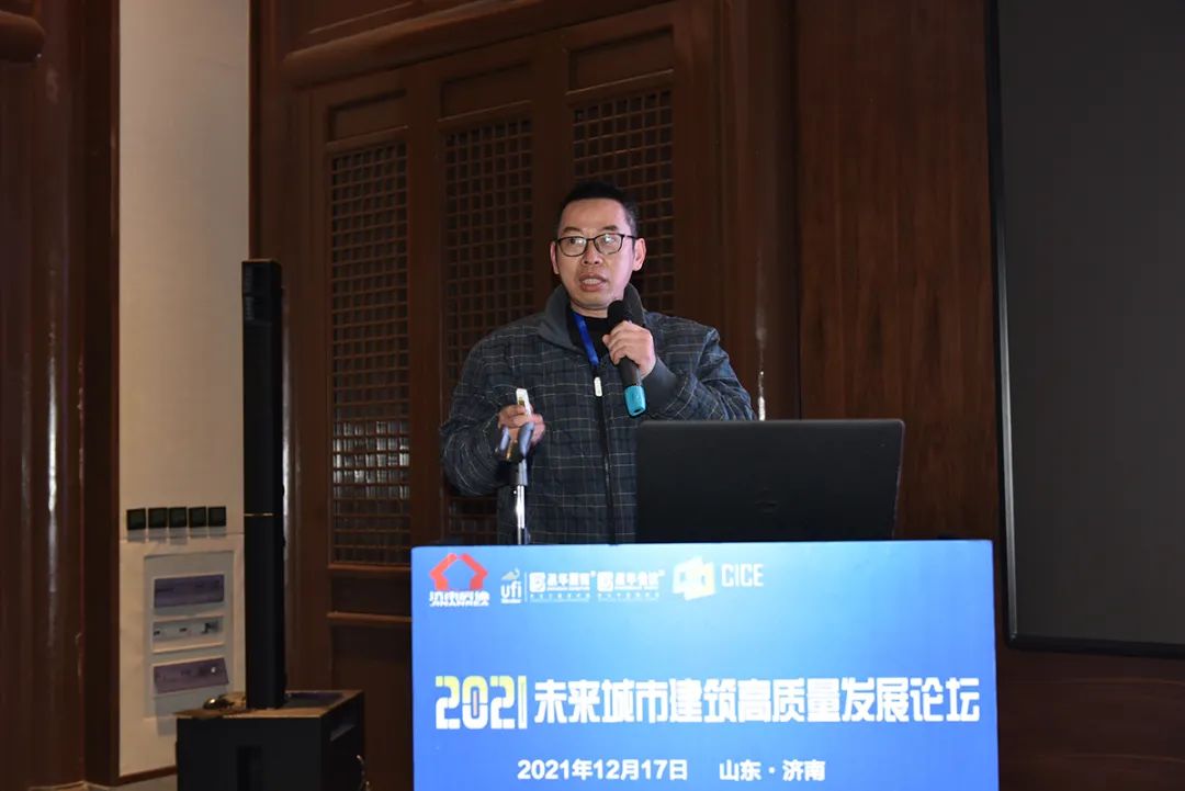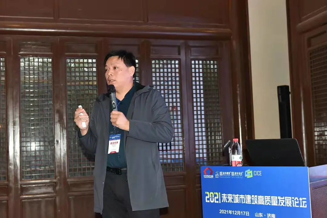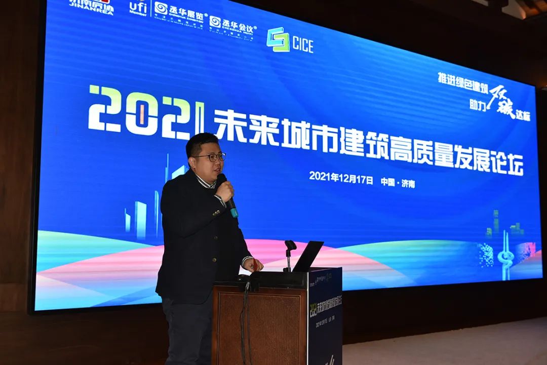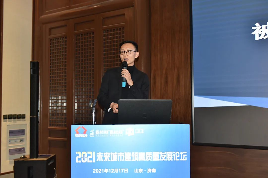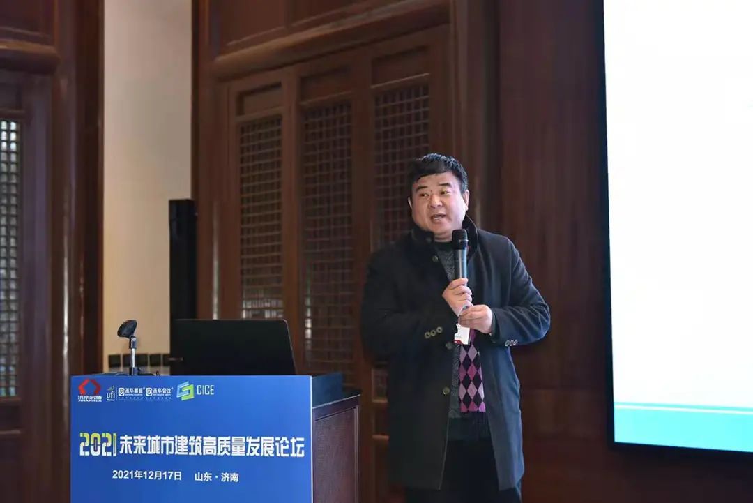 濟(jì)南市房地產(chǎn)業(yè)協(xié)會秘書長于泉就“2021未來城市建筑高質(zhì)量發(fā)展論壇”做大會主持。