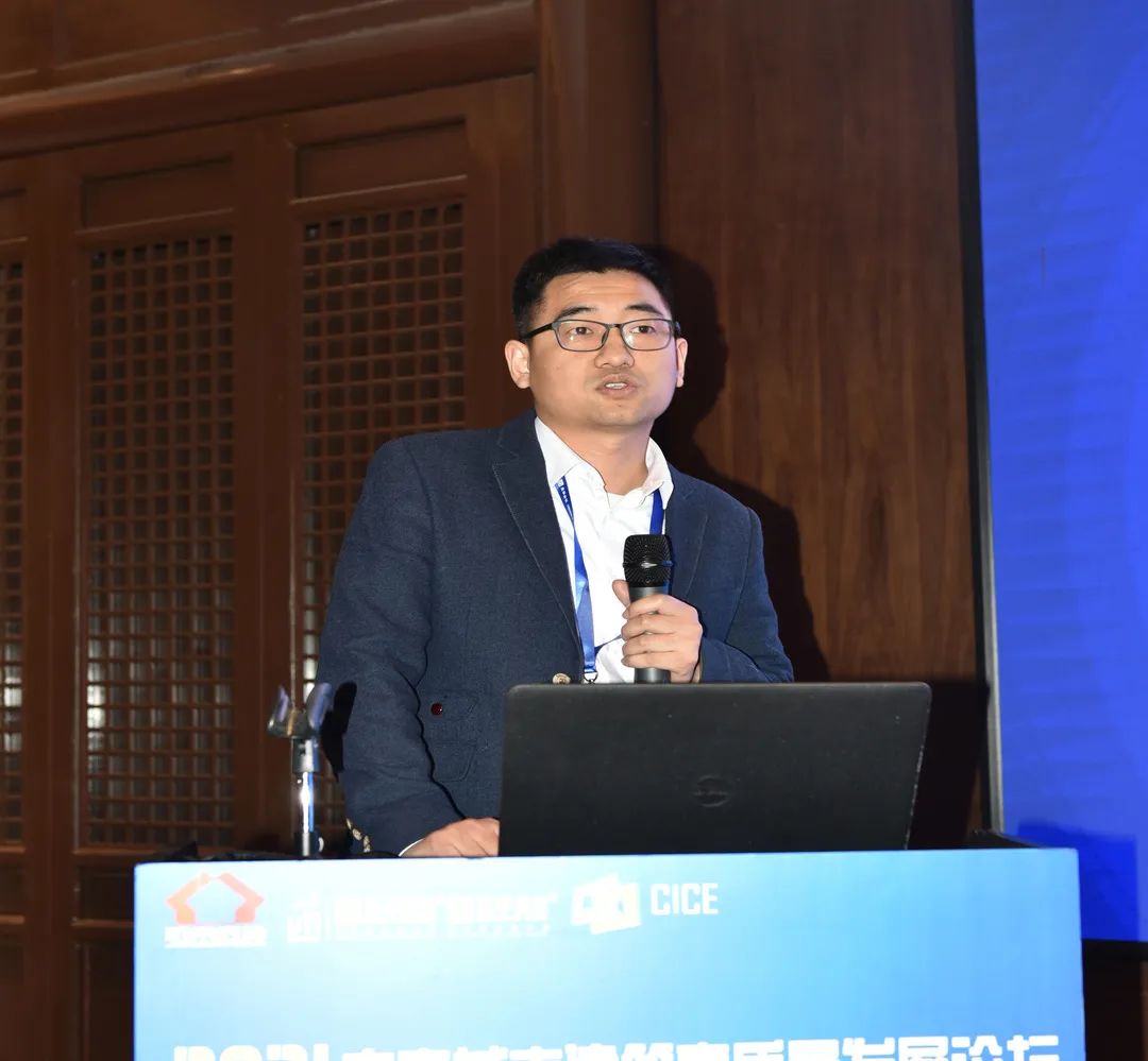 山海大象綠色建筑科技有限公司技術(shù)主任桑維林就“輕鋼裝配式被動式建筑項目總結(jié)”現(xiàn)場進(jìn)行分享。