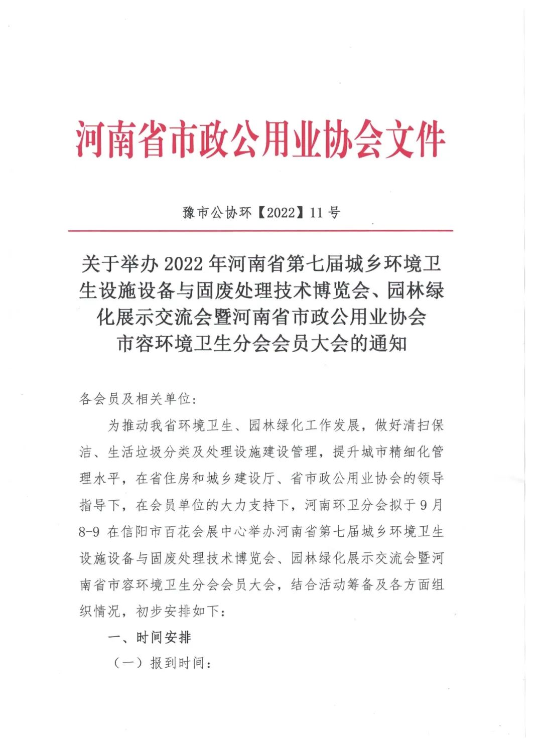 近日河南省市政公用業(yè)協(xié)會(huì)市容環(huán)境衛(wèi)生分會(huì)發(fā)布通知(豫市公協(xié)環(huán)【2022】11號(hào)),對(duì)9月8-9日在信陽(yáng)舉辦的河南省第七屆城鄉(xiāng)環(huán)境衛(wèi)生設(shè)施設(shè)備與固廢處理技術(shù)博覽會(huì)、園林展示交流會(huì)暨河南省市政公用業(yè)協(xié)會(huì)市容環(huán)境衛(wèi)生分會(huì)會(huì)員大會(huì)(以下簡(jiǎn)稱第七屆河南環(huán)衛(wèi)展暨園林展或活動(dòng))及相關(guān)活動(dòng)作了全面部署和強(qiáng)調(diào)要求。