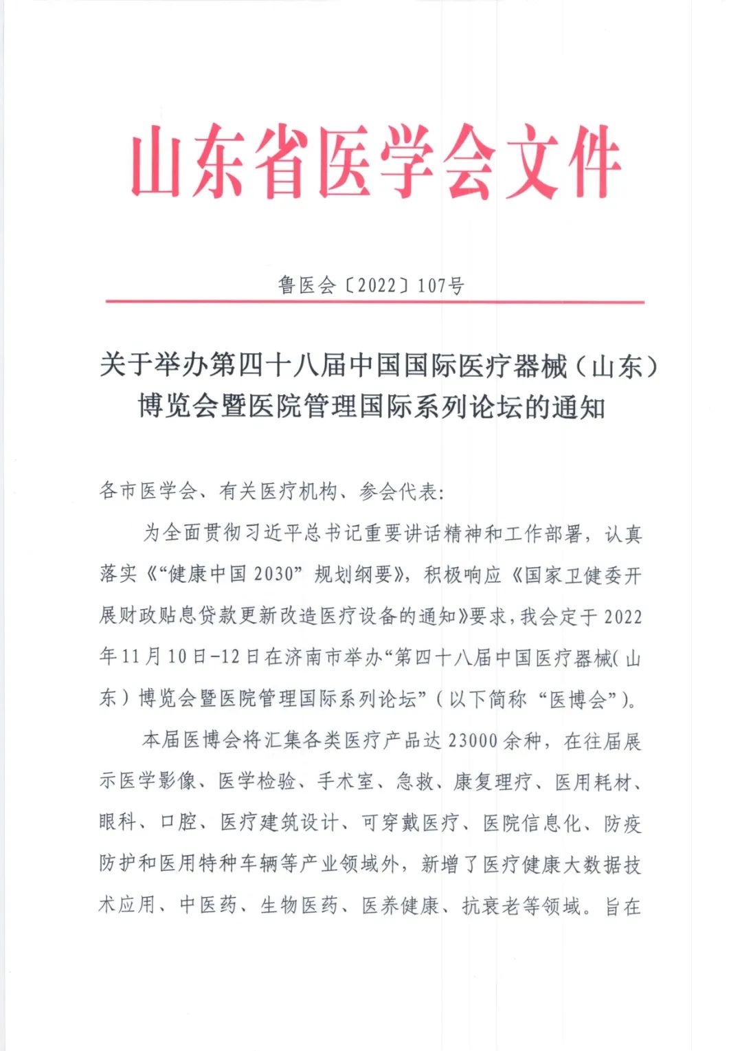 關(guān)于舉辦第四十八屆中國國際醫(yī)療器械(山東)博覽會暨醫(yī)院管理國際系列論壇的通知