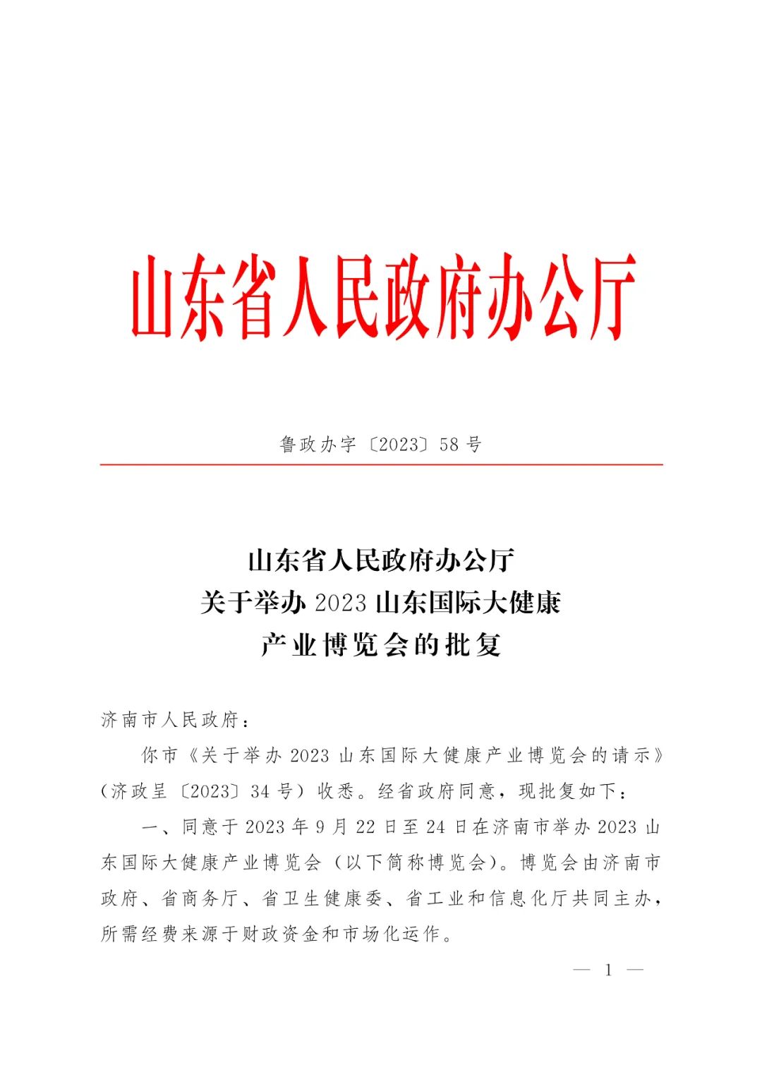 5月29日,山東省人民政府辦公廳正式發(fā)布批復(fù),同意于2023年9月22日至24日在濟(jì)南市舉辦2023山東國際大健康產(chǎn)業(yè)博覽會。