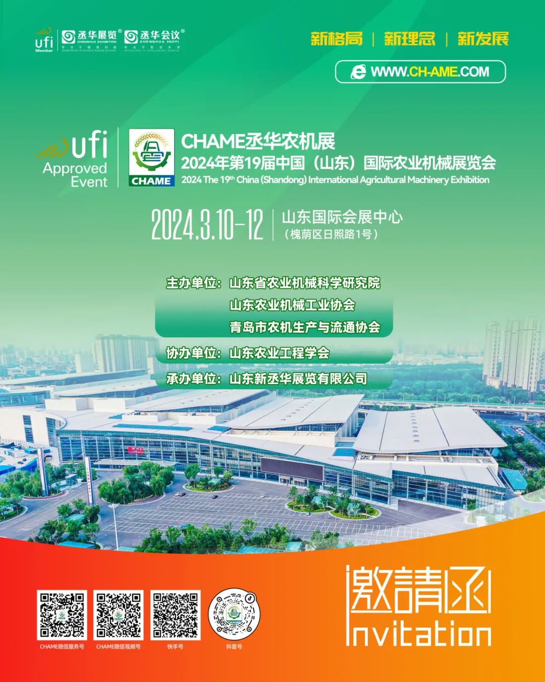 山東農(nóng)機展是由山東省農(nóng)業(yè)機械科學(xué)研究院、山東農(nóng)業(yè)機械工業(yè)協(xié)會、青島市農(nóng)機生產(chǎn)與流通協(xié)會等單位共同主辦,山東農(nóng)業(yè)工程學(xué)會協(xié)辦,山東新丞華展覽有限公司具體承辦的農(nóng)業(yè)機械行業(yè)的盛會,至今已經(jīng)成功舉辦了18屆,是國內(nèi)農(nóng)業(yè)機械行業(yè)首個通過UFI 認(rèn)證的農(nóng)機專業(yè)展會項目。