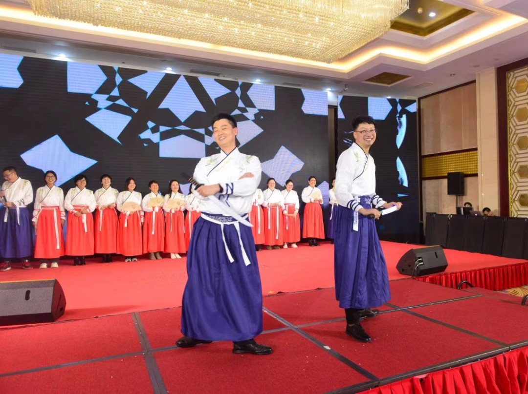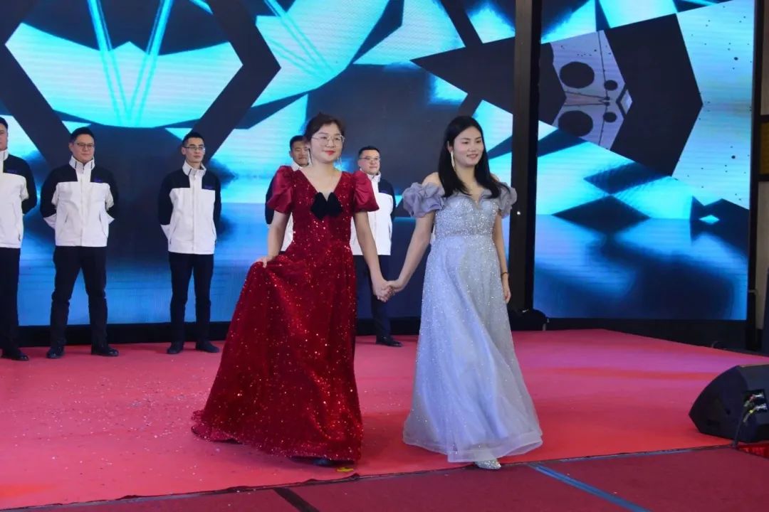 風(fēng)采展示張揚活力自信,服飾文化彰顯時代美學(xué)。晚會現(xiàn)場還進行了丞華人自己的“服裝走秀”節(jié)目。伴隨T臺秀活動按鈕的開啟,丞華100多位“模特”身著商務(wù)正裝、新式禮服等現(xiàn)代裝,以及唐服、明服、宋服等漢服逐一亮相。最后壓軸走秀表演的是玩偶服裝,五位萌萌的可愛“玩偶人”現(xiàn)場還與觀眾進行了互動,下了一場新春“金錢雨”,將晚會推向了又一波高潮。這場走秀表演節(jié)目不僅讓臺下觀眾沉浸在了古今轉(zhuǎn)換的時空中,還目睹到傳統(tǒng)與潮流的融合,完美與卓越、優(yōu)雅與時尚的風(fēng)格,感受到了活力丞華人的風(fēng)采,為觀眾呈獻了一場美輪美奐的視覺盛宴。