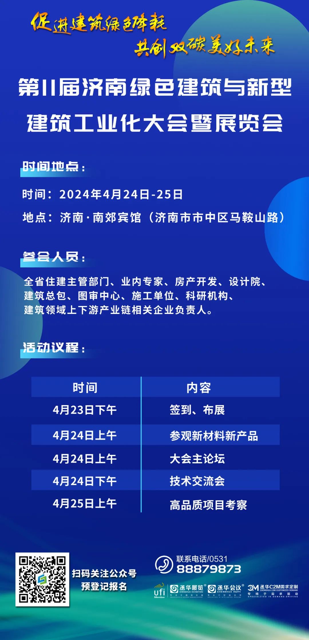 為積極推進(jìn)綠色低碳建筑的發(fā)展,助力建筑領(lǐng)域雙碳達(dá)標(biāo),在濟(jì)南市住房和城鄉(xiāng)建設(shè)局的指導(dǎo)下,“第11屆濟(jì)南綠色建筑與新型建筑工業(yè)化大會暨展覽會”定于2024年4月24-25日在濟(jì)南·南郊賓館隆重召開,同期召開2024第二屆濟(jì)南超低能耗建筑技術(shù)交流會、83節(jié)能標(biāo)準(zhǔn)優(yōu)質(zhì)產(chǎn)品展覽會。